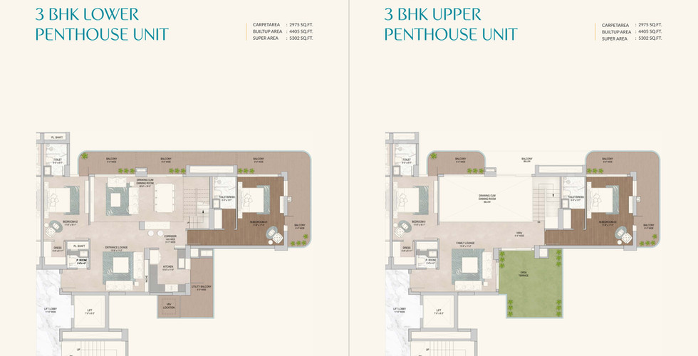5 + 1 BHK Apartments – Rare, villa-style grandeur in a high-rise.